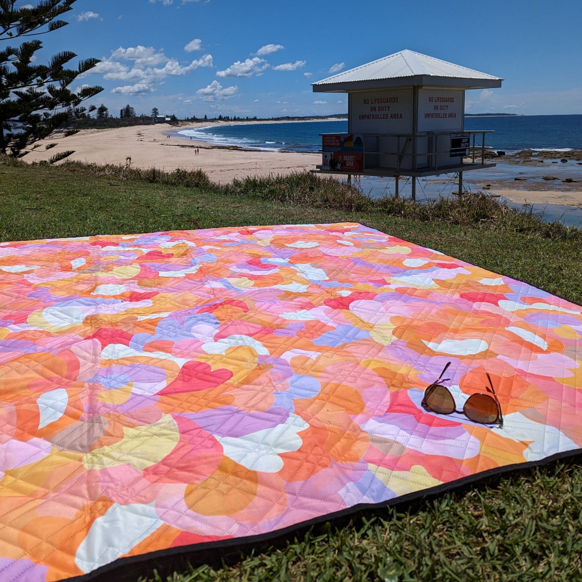Large 78" x 78" picnic blankets that are designed to fit the whole family in plush, practical luxury. Crafted from very high quality, durable 300D Oxford fabric (made with 64 recycled water bottles).
